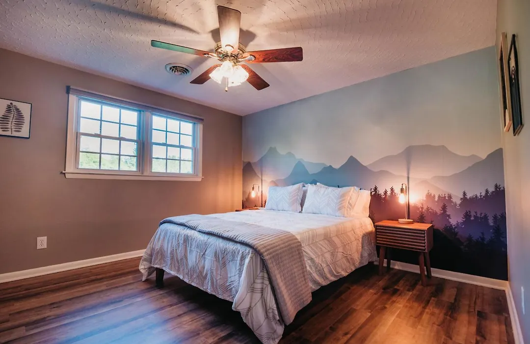 Mount Tabor Ranch Near Vt - King Bed/Fast Wi-Fi Villa comes with media amenities like a flat-screen TV with satellite channels, as well as climate control, ensuring the comfort of our guests. Along with a sofa set and a work desk, the interior features a fireplace. Bathroom facilities also include a walk-in shower. A dryer and towels are included to enhance your comfort.
